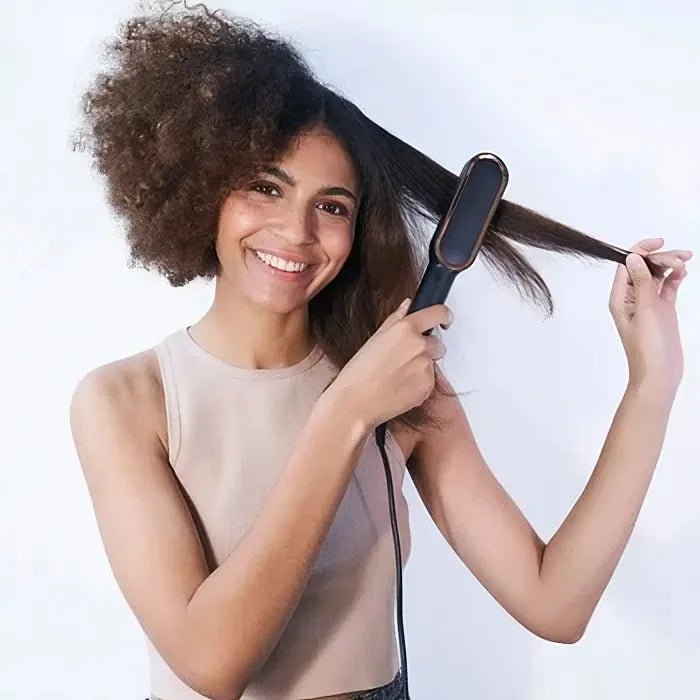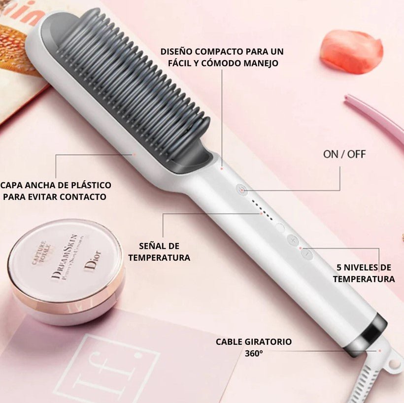 ¿Cansada de gastar tiempo y duinero luchando contra el encrespamiento y los enredos? SE ACABÓ. Nuestro Cepillo Alisador es la solución definitiva para obtener un cabello suave. liso y sedoso en cuestión de minutos.