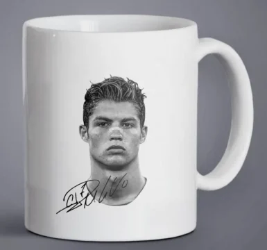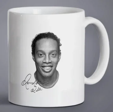 Taza de cerámica + Uso doméstico/oficina + Taza de café o té + Diseño de Messi, Ronaldo, Neymar o Ronaldinho, impresa a doble cara